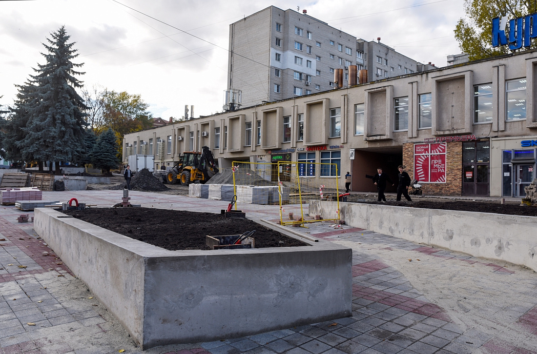 Губернатор Курской области Александр Хинштейн и глава Курска Евгений Маслов оценили ход работ на ряде объектов, среди которых площадь перед ТЦ «Куряночка». Специалисты подрядной организации завершили здесь установку подпорных стен и почти закончили укладывать плитку. В ближайшие дни приступят к асфальтированию и заливке конструкции под качели. Также здесь установят малые архитектурные формы и скамейки, высадят более 30 деревьев и 230 кустарников, организуют клумбы и посеют газон. Глава региона отметил, что собственнику торгового центра необходимо привести в порядок вывеску. Завершить благоустройство должны до конца октября. Кроме того, уже на следующей неделе жителям представят на обсуждение варианты скульптуры Куряночки.