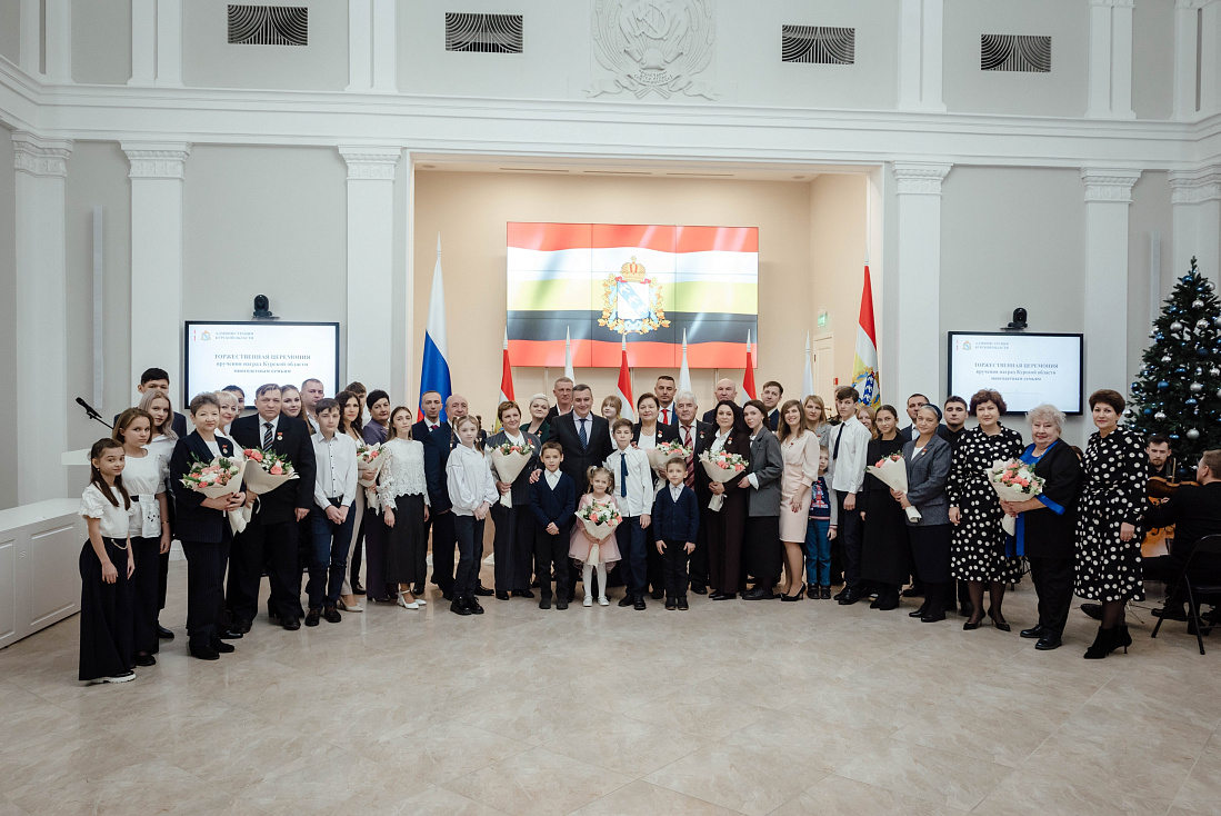 В Доме Советов прошла церемония награждения родителей нагрудным знаком «За заслуги в воспитании детей», почетным знаком «Материнская слава – Отцовская доблесть». В мероприятии принял губернатор Курской области Александр Хинштейн. Награды получили представители 12 семей.