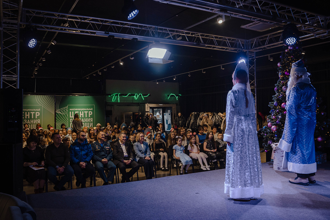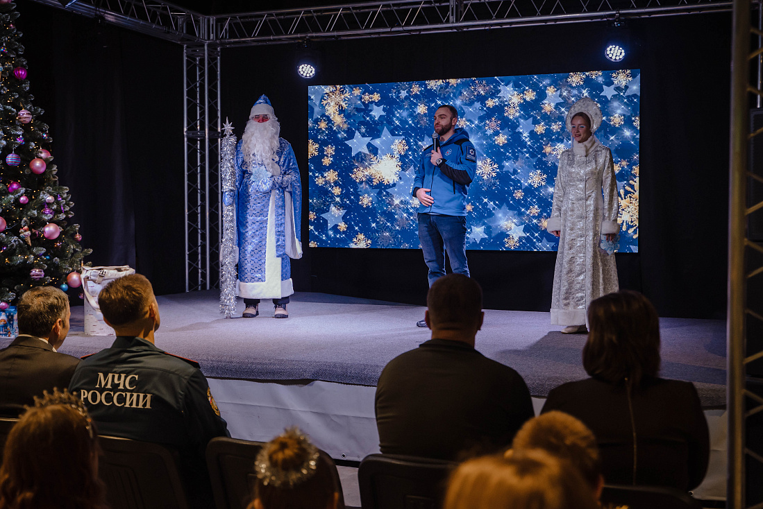 Праздничная елка была организована Правительством Курской области, Главным управлением МЧС России по Курской области совместно с Национальным центром помощи пропавшим и пострадавшим детям, который подготовил сладкие подарки для 21 тысячи ребят из приграничья.