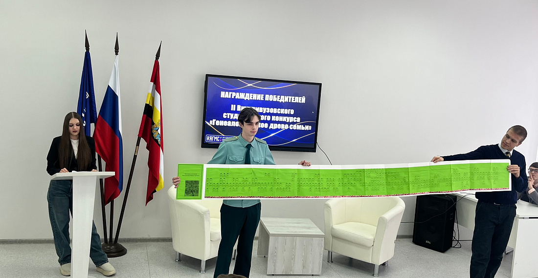 В Курской академии государственной и муниципальной службы состоялась церемония награждения победителей и призеров II Внутривузовского студенческого конкурса «Генеалогическое древо семьи». Мероприятие прошло в сотрудничестве с Курским историко-родословным обществом.