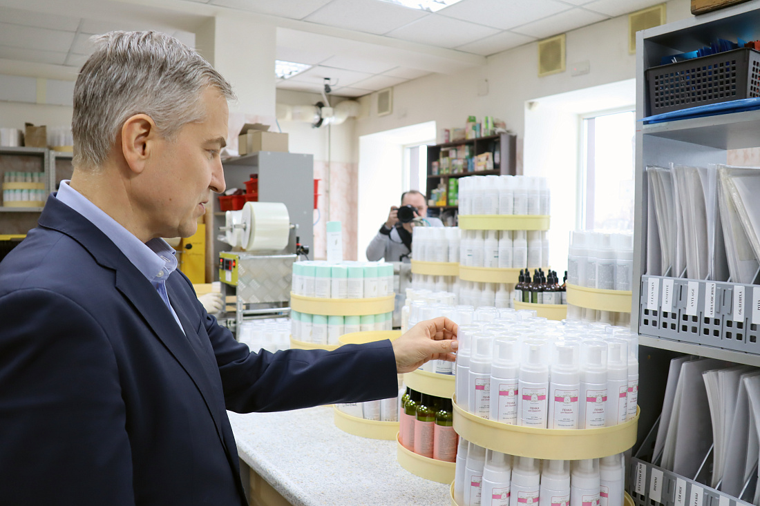 И.о. губернатора Курской области Александр Чепик с рабочим визитом посетил малое предприятие ООО «Клеона», которое занимается разработкой и производством высококачественной уходовой косметики для лица и волос, а также натурального мыла. Здесь создали более 600 рецептур натуральных косметических средств. Продукцию реализуют не только в России, но и в Беларуси, Киргизии, Казахстане и Армении.