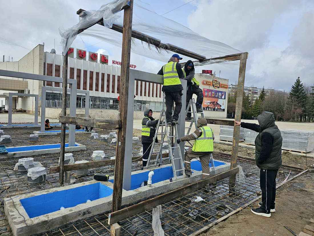 У кинотеатра «Русь» продолжают второй этап благоустройства фонтана. Финансирование работ взял на себя МГОК им. А.В. Варичева. Общая стоимость проекта - 135 млн рублей. На данный момент выполнено 53% работ. По графику завершить их должны в июне, но, по словам главы города Александра Михайлова, фонтан заработает к майским праздникам. На площади уже появился деревянный амфитеатр с видом на будущий фонтан. Кроме того, отремонтируют за счет арендатора и здание кинотеатра.