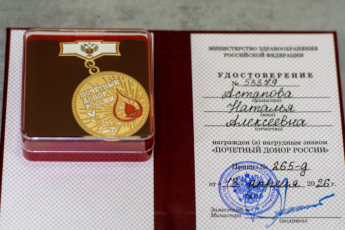 В Курском центре крови в Национальный день донора крови в России курянам вручили нагрудные знаки «Почетный донор России». Эта награда — высшая для людей, безвозмездно сдающих кровь и ее компоненты. Чтобы получить звание «Почетный донор», необходимо 40 раз безвозмездно сдать кровь или 60 раз — плазму. Оно присвоено Наталье Александровой, Наталье Астаповой, Ольге Бондаренко, Марине Дмитриевой, Наталье Фурмановой и Игорю Ширлину.
