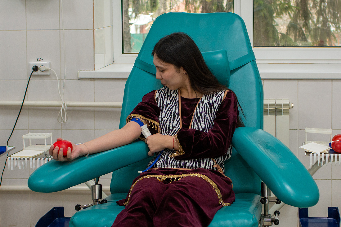 Также в центре крови прошла акция по сдаче крови, посвященная Году единства народов России, объявленному Президентом России Владимиром Путиным. В ней приняли участие курские студенты. Они пришли в национальных костюмах в знак того, что кровь не имеет национальности, а милосердие и готовность помочь объединяют людей разных культур и традиций. Среди тех, кто впервые сдавал кровь, студент Курского государственного университета Радмир Хакимов.