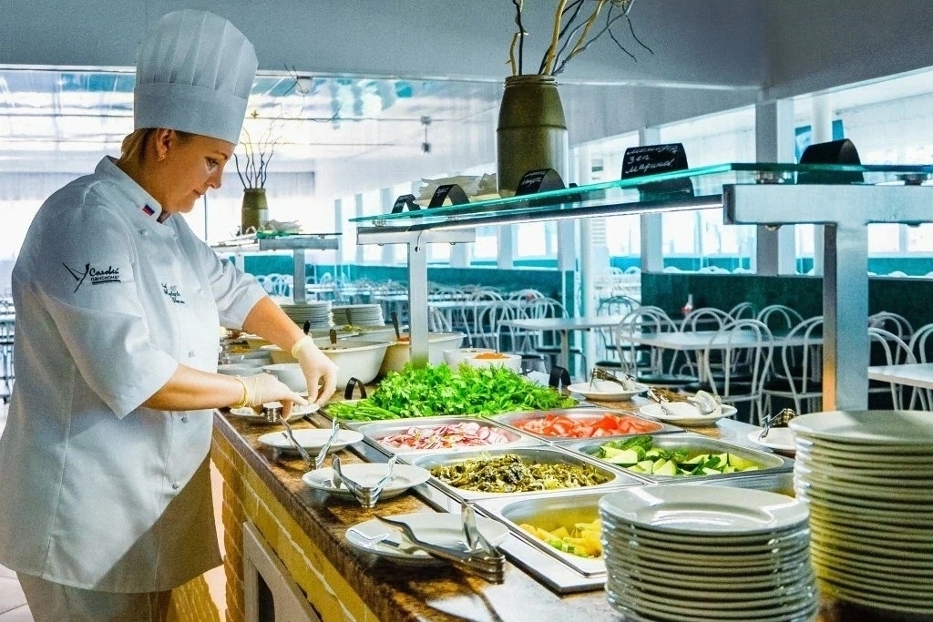 Проживающим предоставляется комплексное трёхразовое питание. В распоряжении Пансионата собственный пляж с шезлонгами и навесами, для семей с детьми проводится регулярная досуговая программа.