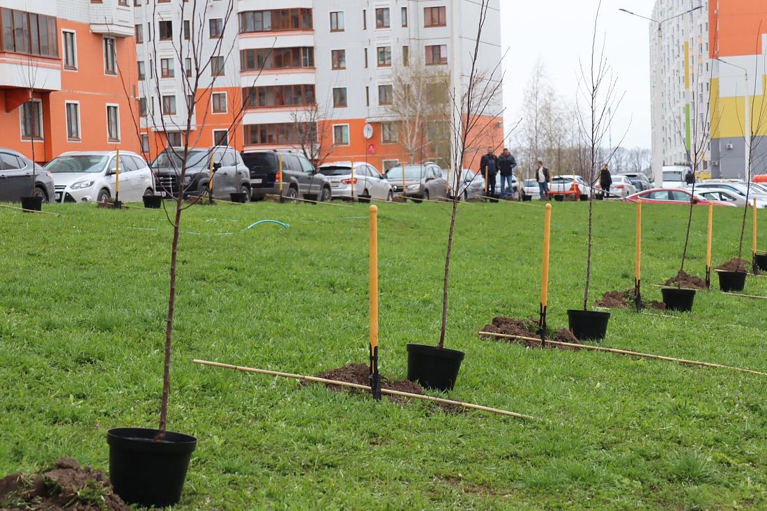 В Курске на проспекте Анатолия Дериглазова высадили Аллею памяти из яблонь